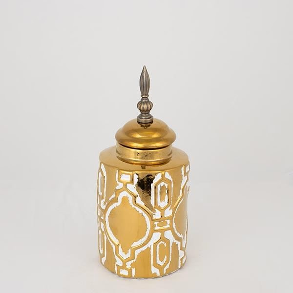 ESTHETI HOME ΒΑΖΟ ΜΕ ΚΑΠΑΚΙ ΚΕΡΑΜΙΚΟ ΛΕΥΚΟ - ΧΡΥΣΟ 12.5x12.5x28cm 752-20077