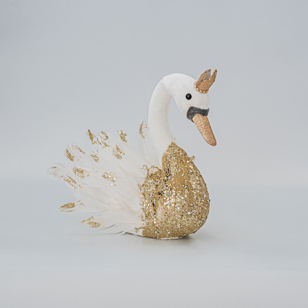 EUROLAMP ΒΕΛΟΥΔΙΝΟΣ ΚΥΚΝΟΣ, ΛΕΥΚΟΣ, ΜΕ ΧΡΥΣΟ ΓΚΛΙΤΕΡ, 27x22x28cm 600-45574